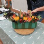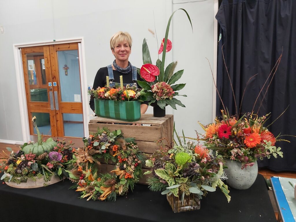On November 7th Fiona Penny demonstrated seasonal floral arrangements. This was an excellent meeting with Fiona giving plenty of tips on creating displays and information about alternatives to floral foam (oasis). She made 6 different designs, using different methods, including oasis, biodegradable foam, chicken wire and a pin holder. We also learnt how to make a wreath frame.